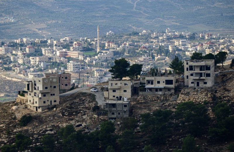 Des appartements résidentiels inachevés sont visibles près de la ville de Kharas, au nord d'Hébron en Cisjordanie, le 6 décembre 2023. (John Macdougall, AFP)