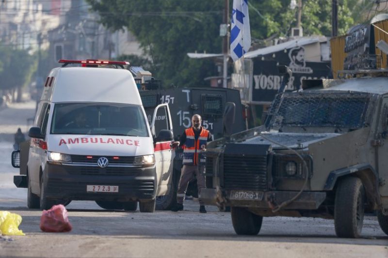 Le 12 décembre 2023, l'armée israélienne a fouillé une ambulance palestinienne à l'entrée d'un hôpital à Jénine, en Cisjordanie. (Jaafar Ashtiyeh, AFP)