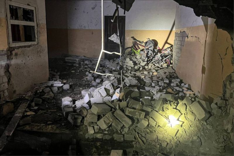 Cette photo prise et diffusée par le service de presse des Forces armées ukrainiennes le 14 décembre 2023 montre un bâtiment résidentiel endommagé à la suite d'une attaque de drone à Odessa (Photo by Handout / Armed Forces of Ukraine / AFP)