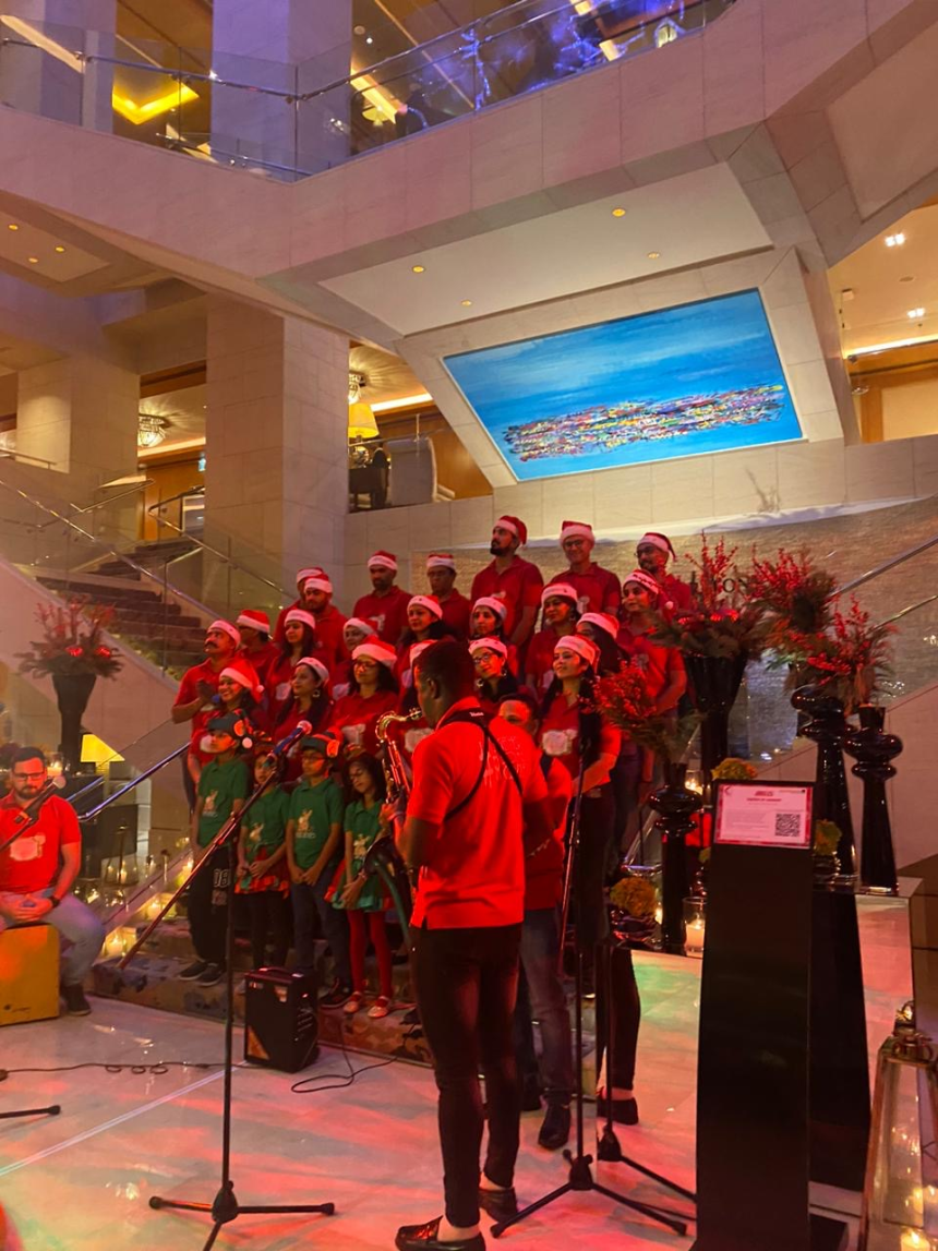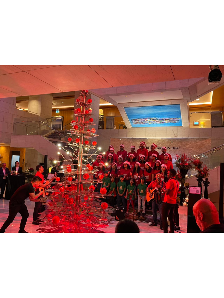 L’inauguration de la toile de Zeina Nader a été sublimée par l’illumination d’un sapin de Noël, sculpté dans le style distinctif de Wissam Melhem, qui a apporté une ambiance festive à la cérémonie. La douceur de l’événement a été encore rehaussée par les voix mélodieuses d’une chorale d’enfants, qui ont chanté au profit de la lutte contre le cancer. Leurs chants de Noël ont empli l’espace d’une émotion profonde, ajoutant une touche de philanthropie à la soirée. Pour couronner cette célébration, un cocktail raffiné, à la hauteur de la réputation du Ritz, a été offert, clôturant ainsi la soirée avec élégance et distinction. Le tout savamment orchestré par le GM Christian El Khoury.