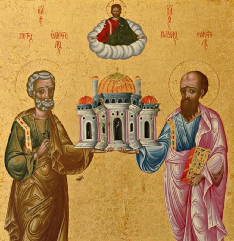 "Les Saints Pierre et Paul piliers de l'église" oeuvre attribuée à Neemat al Moussawwir 1704 Saint- Nicolas Tripoli.Lire aussi