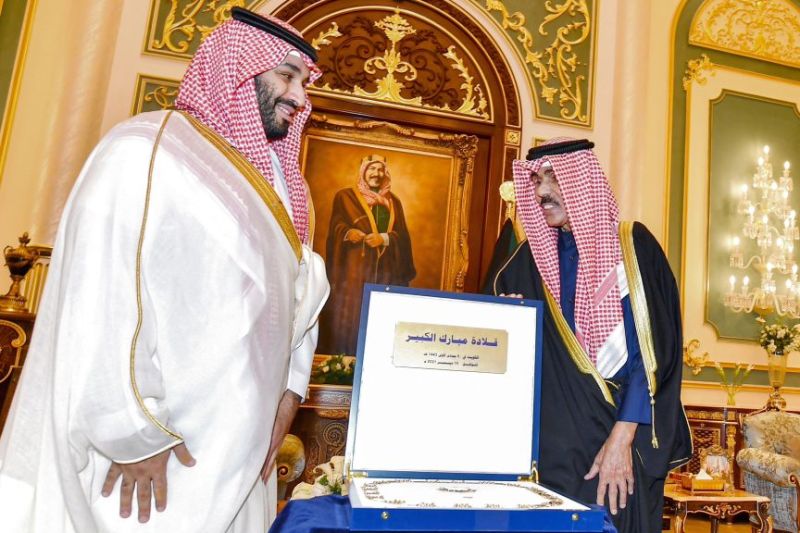L'émir du Koweït, le cheikh Nawaf al-Ahmad al-Jaber al-Sabah, remet au prince héritier saoudien, Mohammed bin Salman, l'ordre de Moubarak le Grand, le 10 décembre 2021. (Kuna, AFP)Sur le plan diplomatique, il a gardé le statu quo, préférant ne pas nouer de relations avec Israël comme l'ont fait ses voisins de Bahreïn et des Émirats arabes unis.