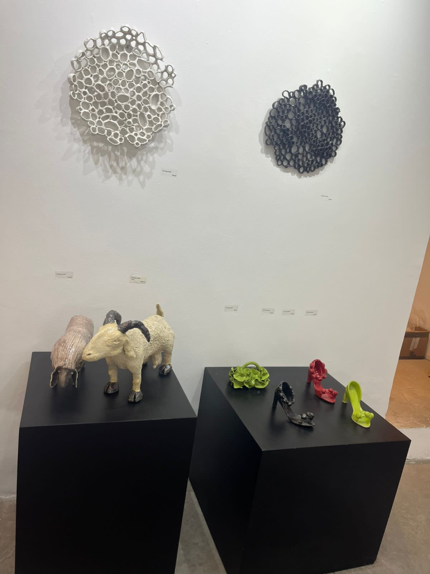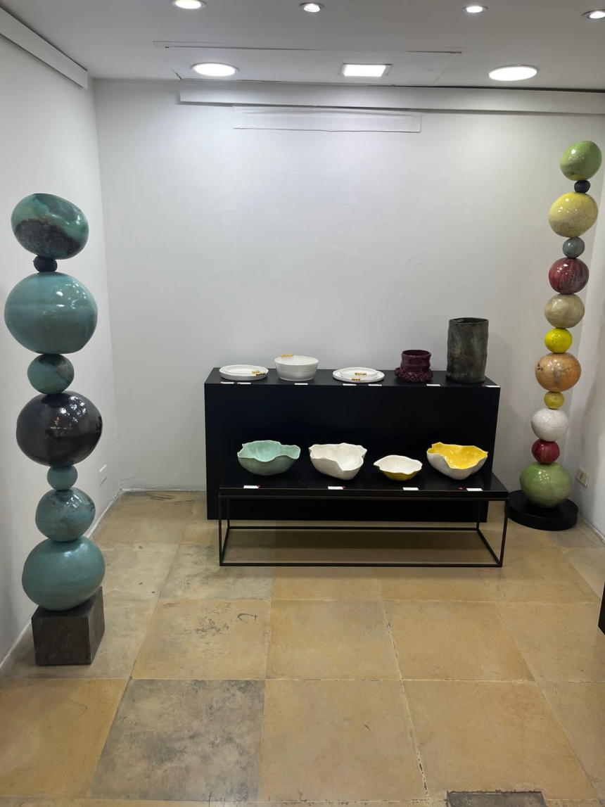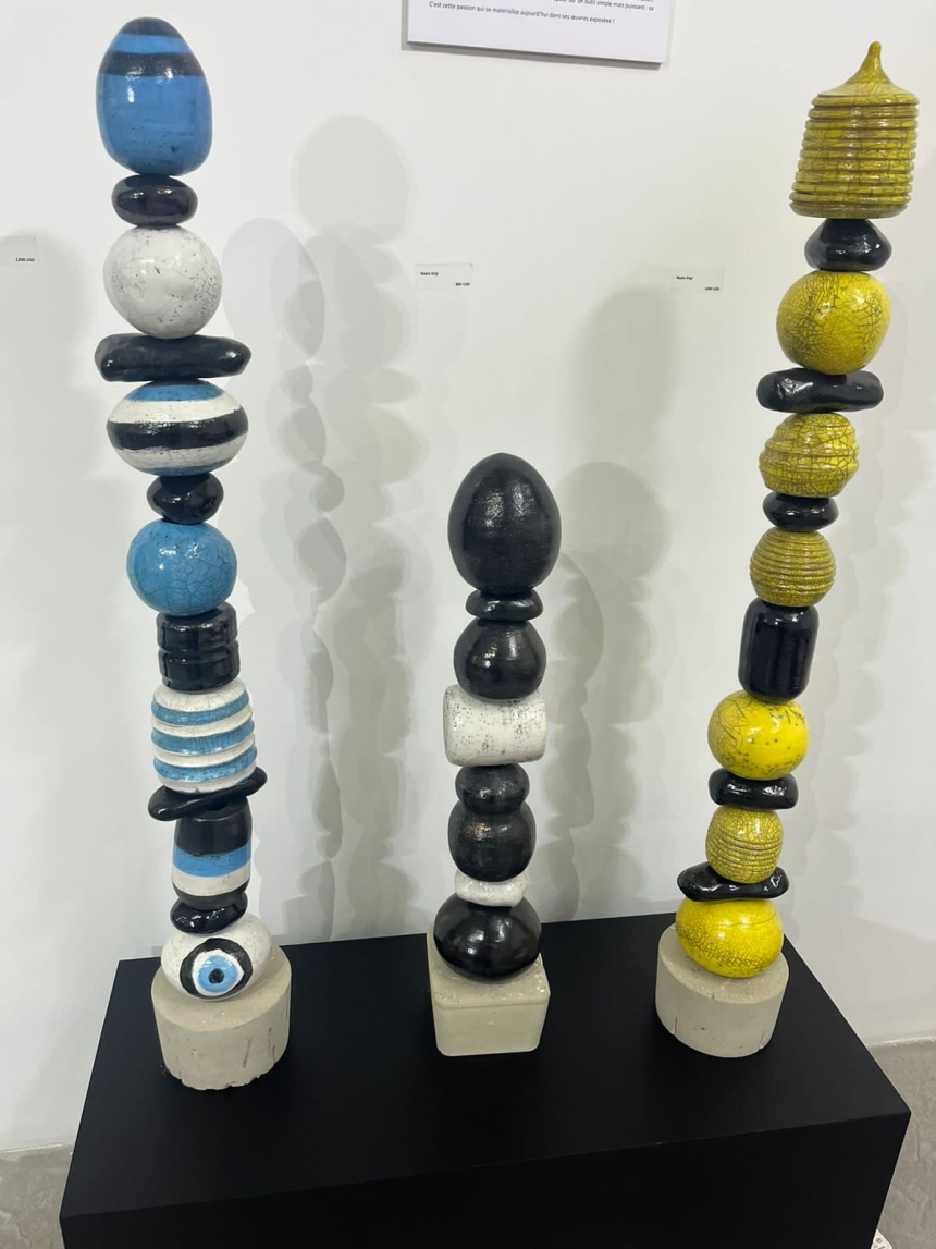 Dorine Dahdah, également experte en céramique, est l’artiste derrière le grand totem. Ses créations, qui s’inspirent des sculptures rituelles, fusionnent diverses formes, couleurs et textures. Elles véhiculent des histoires et des émotions, harmonisant ainsi tradition et modernité.