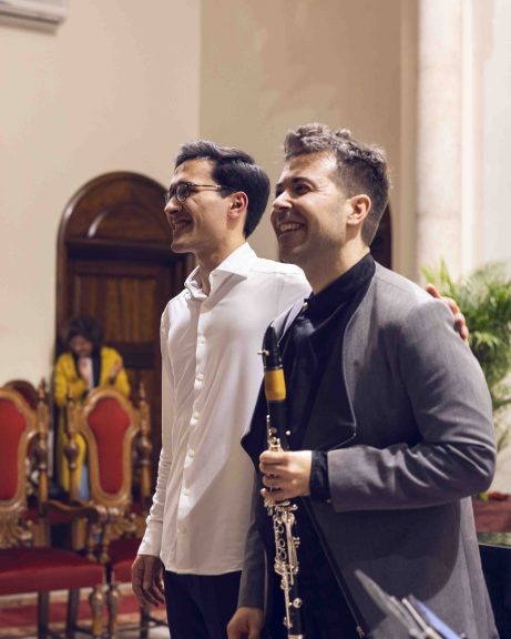 Le duo impressionne particulièrement, dans le troisième mouvement, Lento, par une maîtrise absolue de l’art des nuances, allant d’un fortissimo imposant à un triple piano poignant. Après l’énonciation de sept accords solennels, moment caractéristique niché au cœur de la sonate, le piano de Nuron Mukumi égrène six mi, comme prélude à une marche funèbre que la clarinette se chargera de tracer religieusement dans le registre aigu. Toutefois, Pablo Barragán rompra aussitôt le fil de cette contemplation pour s’engager avec ferveur dans une cascade de gammes virtuoses dans le finale, Molto Allegro, où s’insinue un bref passage frémissant, marqué appassionato. Le thème nostalgique, jadis évoqué dans l’Allegretto liminaire, réapparaît et clôt majestueusement l’œuvre avec une note triomphante. Les deux artistes, dans leurs timbres épurés, ont ainsi fait le choix d’une interprétation cristalline, un moment de grâce qui caresse délicieusement les tympans.