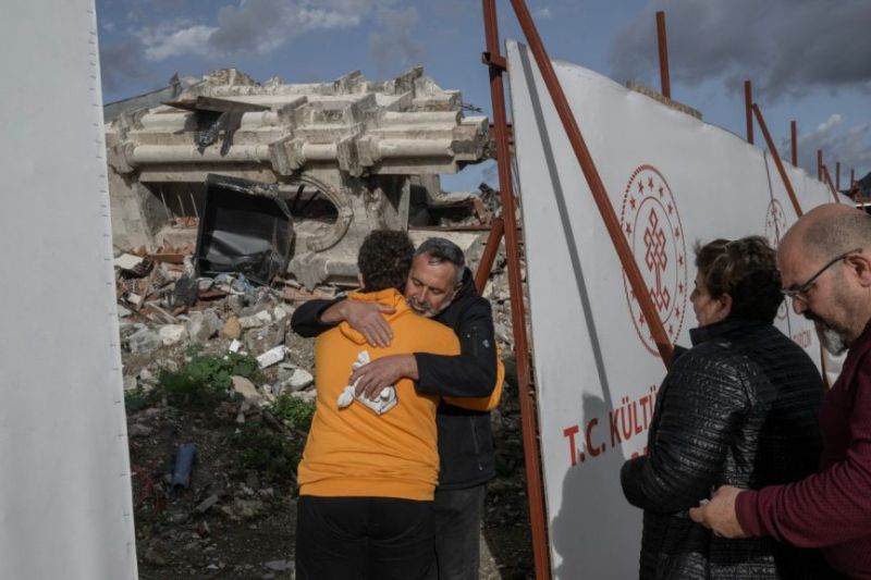 Des gens affluant à Antakya où une messe de Noël a été célébrée sur les ruines de l’église orthodoxe d’Antakya détruite par le violent séisme du 6 février qui a balayé le sud de la Turquie. Bulent Kilic/AFPFamilles dispersées