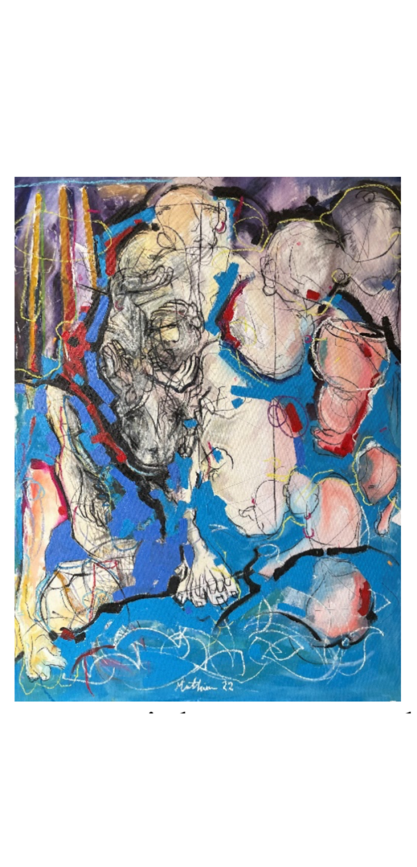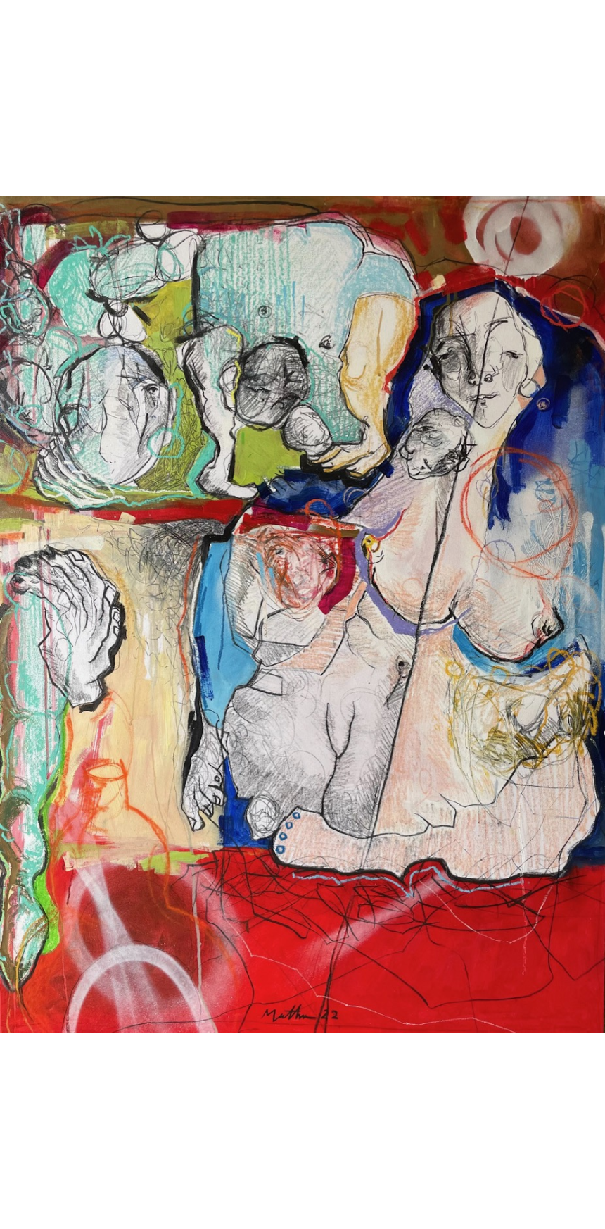 L’art figuratif de Mathieu se dilue dans du symbolisme, tantôt dans de la pure abstraction. D’où la maturité de l’artiste. Il se donne la liberté de voguer sur son propre nuage. Il croit en l’art et le divulgue avec simplicité et humilité.
