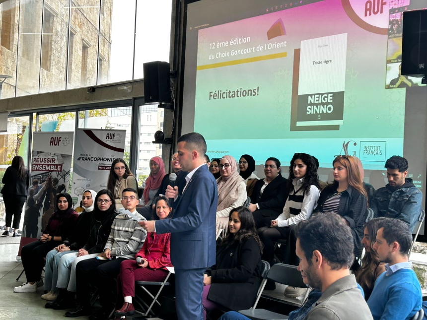 Le mercredi 6 mars 2024, le Choix Goncourt de l’Orient, organisé par l’Agence universitaire de la francophonie (AUF) au Moyen-Orient en partenariat avec l’académie Goncourt, l’Institut français du Liban et ceux de la région, a été proclamé au Centre d’employabilité francophone (CEF). Le grand gagnant est Triste Tigre de Neige Sinno, qui avait déjà remporté le prix Fémina 2023, le Goncourt des lycéens 2023 et le prix littéraire du Monde. Retour sur cette récompense, accompagné d'un entretien exclusif avec Mokhtar Amoudi, lauréat du prix Goncourt des détenus 2023.