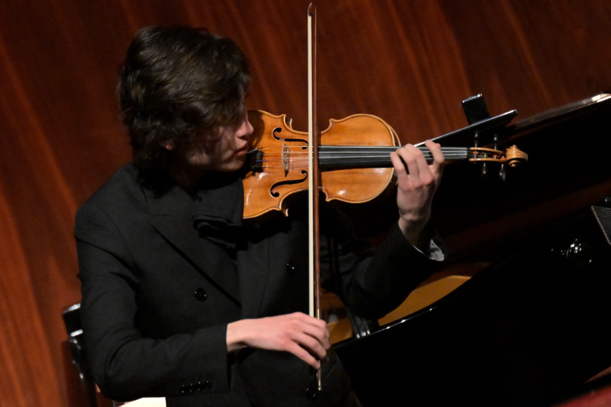 Après cette brillante interprétation de la sonate de Grieg, l'attention se tourne désormais vers la Sonate pour violon et piano no1 en la mineur op.105 de Robert Schumann (1810-1856). Le compositeur aurait exprimé son insatisfaction au sujet de son œuvre, déclarant: «La première sonate ne me plaisait pas, c'est pourquoi j'en ai fait une seconde, dont j'espère qu'elle sera meilleure». Et pourtant, cette pièce est imprégnée de l'esprit schumannien, ce même ferment qu’on retrouve dans son Concerto pour piano en la mineur op.54. Le duo met en avant son éloquence narrative en façonnant avec finesse une interprétation personnelle, mais intimement fidèle à la partition. Lozakovich avance avec confiance dans le premier mouvement, marqué par une expression passionnée, une obscurité lumineuse, pourrait-on dire. Les deux instrumentistes démontrent une complicité symbiotique, évoquant une délicieuse instabilité émotionnelle, teintée d'inquiétude dans le deuxième mouvement. Ils se lancent ensuite dans une cascade de notes rapides cristallines, ponctuées par des moments de lyrisme amoureux, dans le troisième mouvement, pour conclure par des déclarations passionnées et entraînantes.