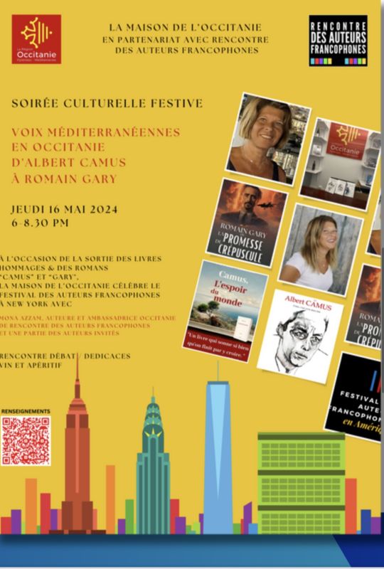 Le coup d’envoi du Festival sera donné le 15 mai avec un rendez-vous exceptionnel en compagnie de l’Organisation internationale de la Francophonie. Le 16 mai, la Maison de l’Occitanie ouvrira ses portes pour une soirée placée sous le signe de deux géants de la littérature française, Albert Camus et Romain Gary. Le 17 mai, la fête de la littérature francophone se poursuivra à Mamaroneck, dans le Westchester, avant de s’achever en beauté le 18 mai avec la 3e édition du Festival des auteurs francophones au National Arts Club.