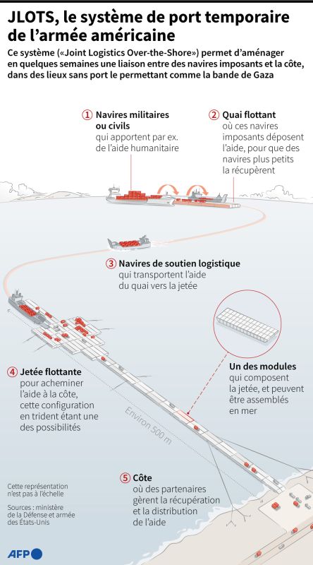 En parallèle, l'armée américaine a annoncé le déploiement d'une «jetée temporaire» au large de la bande de Gaza, censée permettre d'y acheminer enfin de gros volumes d'aide humanitaire. Quatre navires spécialisés en ce sens sont déjà en route pour l'enclave, leur arrivée étant prévue à la fin du mois.