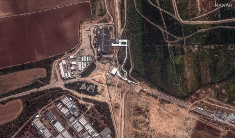 Cette image satellite recueillie et diffusée par Maxar Technologies le 5 avril 2024 montre le poste frontière d'Erez entre le sud d'Israël et la bande de Gaza. (Maxar Technologies / AFP)