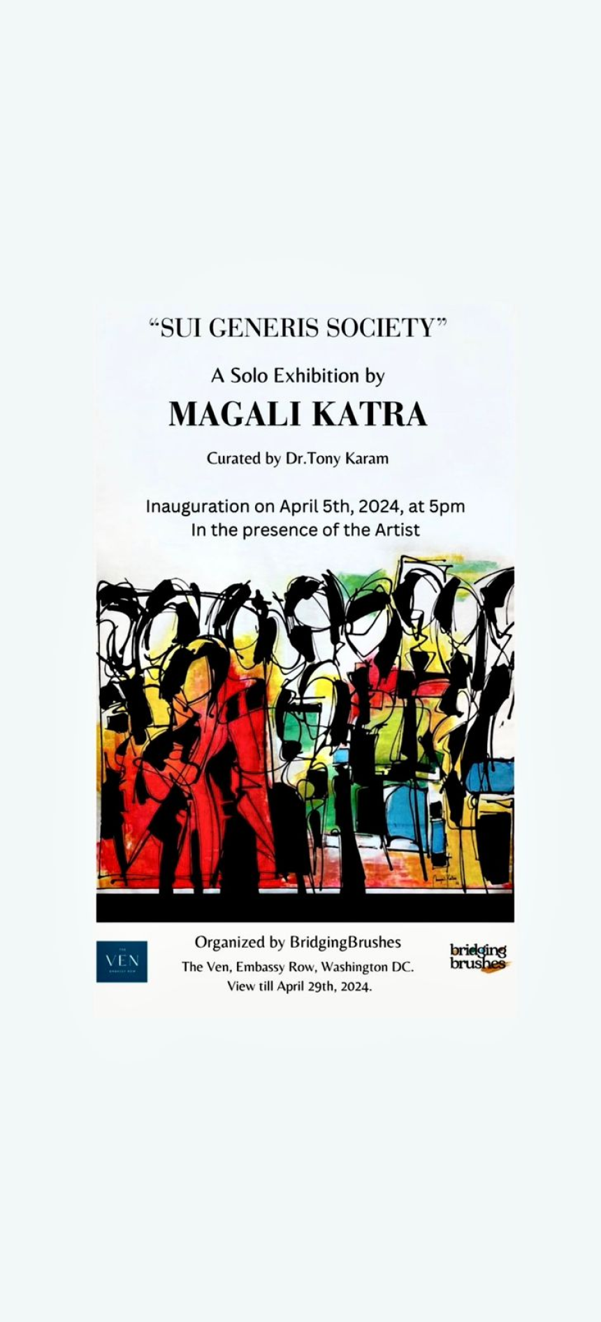 Avec ses lignes épurées, ses couleurs éclatantes et son coup de pinceau précis et délicat, signatures de son style désormais reconnu internationalement, Magali Katra lance un appel à travers cette exposition pour la création d’une société « sui generis », exemplaire et porteuse d’espoir. Chaque toile est en effet un message, une idée sur ce monde meilleur dont rêve l’artiste.