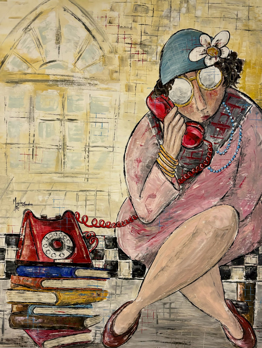 Elle confie: «J'imaginais mes livres qui se tortillaient, puis qui disparaissaient dans les flammes. Les téléphones portables n'existaient pas encore. On n'avait que la ligne fixe qui, la plupart du temps, était hors service. Le pays tout entier était souvent déconnecté. Il n'y a pas si longtemps, mais cela semble presque être dans une autre vie! Aujourd'hui, nous disposons des téléphones portables, du Wifi, d'Internet, des ordinateurs portables… La technologie a certainement fait un bond de géant, c'est indéniablement impressionnant! Mais dans ce coin du monde, même après tant d'années, les mêmes problèmes persistent.» et elle met en peinture toutes ces petites choses du quotidien.