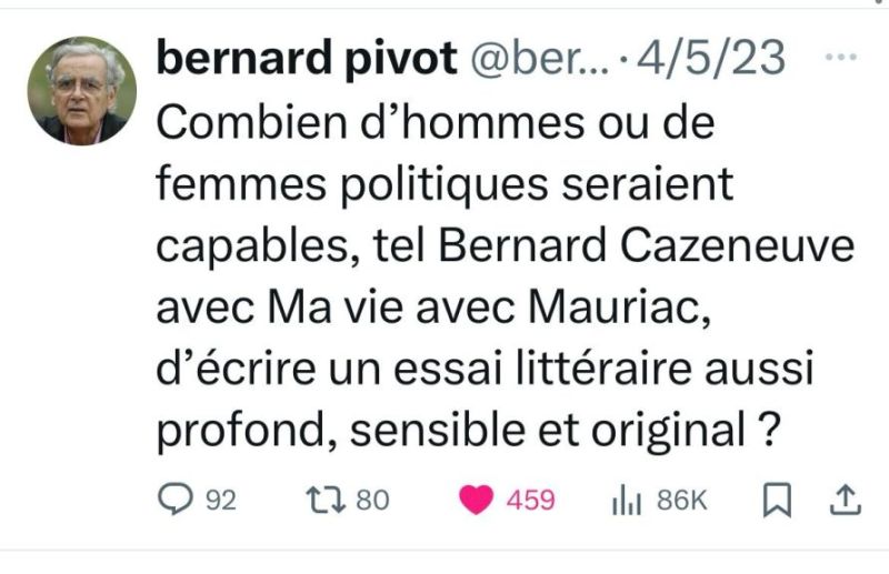 Son dernier tweet sur X.Aujourd’hui, alors que Bernard Pivot nous quitte, c’est une part de notre histoire qui s’en va avec lui. Sa disparition laisse un vide immense dans le monde des lettres et de la culture.