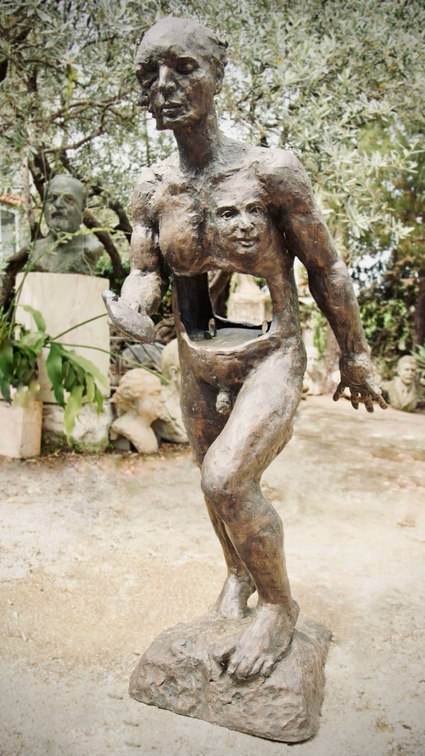 À l’intérieur, une collection de 20 sculptures anciennes et nouvelles attend les visiteurs. Parmi elles, trois œuvres se distinguent par leur portée significative. Le Marcheur aux masques, doté d’une vidéo dans son ventre, explore la complexité de notre identité façonnée par les masques sociaux. Deux mariées, l’une en blanc, l’autre en noir, incarnent respectivement la décomposition de la nature et la lutte pour la liberté face aux défis contemporains, qu’il s’agisse de dogmes religieux, de démocraties en péril ou de nouvelles formes de dictature.
