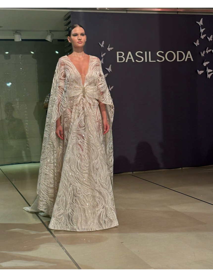 Chaque pièce de cette collection est une ode à la beauté et à la grâce. Dans un esprit de découverte et de changement, la métamorphose est dévoilée pour redéfinir l’identité de Basil Soda, marquée par l’élégance et la résilience. Chaque robe est une pièce d’art en soi. Un effet de magie est offert à l’œil de l’observateur qui admire les tissus soigneusement sélectionnés, pour mettre en évidence la beauté pure et délicate des papillons.