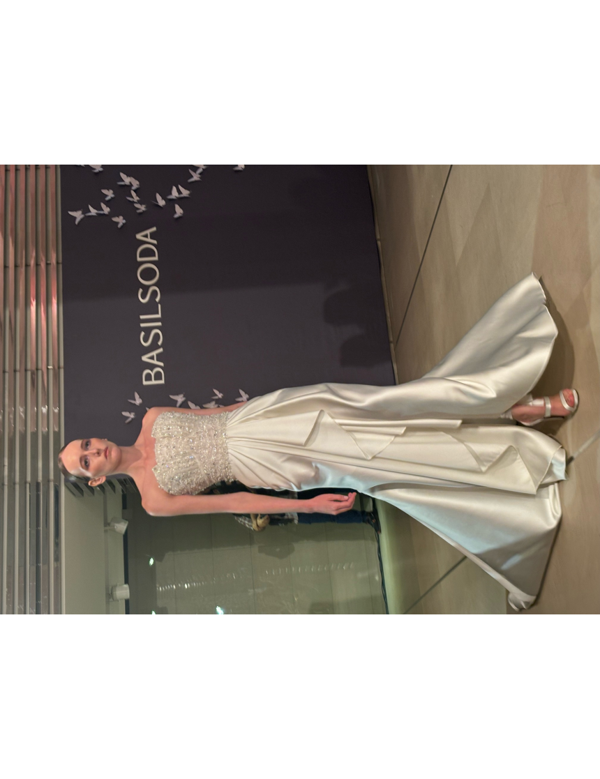 La soie luxueuse, le tulle aérien, la dentelle raffinée et le satin léger sont ornés de perles et de pierres Swarovski, serties à la main, pour ajouter une touche sophistiquée aux tenues qui virevoltent avec légèreté et souplesse. C’est ainsi que l’on retrouve aussi la richesse des détails et le travail artisanal mis en valeur par la marque. Bien que pures et délicates, ces robes/bijoux sont une véritable force qui célèbre la féminité dans sa splendeur et son pouvoir. Cela constitue d'ailleurs l'essence même de l'identité de Basil Soda.