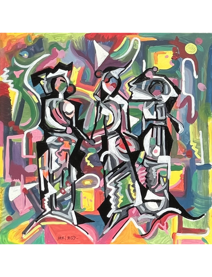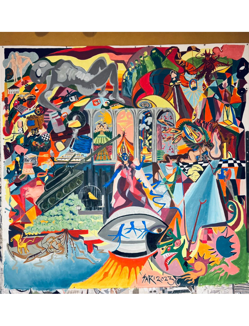 Artiste autodidacte, Sari utilise l’acrylique, l’encre et l’huile pour créer des œuvres personnelles et uniques, mélangeant postimpressionnisme et symbolisme. Son travail a été exposé à l’Art Dubai, au Beirut Art Fair et à Art Basel Miami.