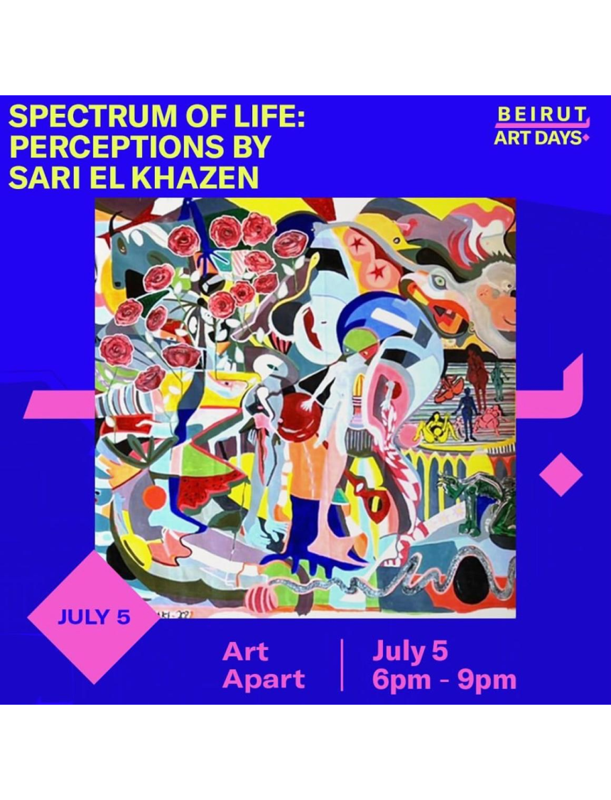 Spectrum of life: Perceptions by Sari el-Khazen est une exposition solo présentant de nouvelles œuvres de l’artiste, principalement des peintures acryliques sur toile et des dessins sur papier réalisés avec différents types de stylos, ainsi qu’une courte vidéo d’animation créée à partir de son art. L’exposition se déroule sur deux étages d’un bâtiment traditionnel libanais dans un nouvel espace d’art et de culture appelé Art Apart, à Gemmayzé, Beyrouth.