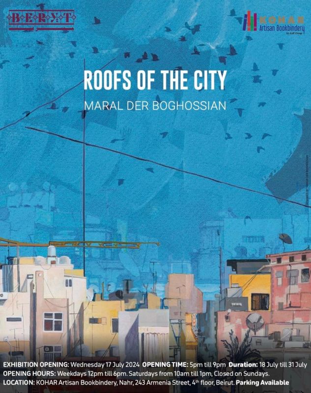 Cet été, la scène artistique beyrouthine sera marquée par un événement de taille: l’exposition solo de Maral Der Boghossian, Roofs of the City, présentée du 18 au 31 juillet 2024 chez KOHAR Artisan Book Bindery. Un projet ambitieux mené en tandem avec sa sœur Nanor, designer graphique, et soutenu par BERYT-CCI, qui promet de révéler toute la poésie et la luminosité du regard que pose l’artiste sur sa ville.
