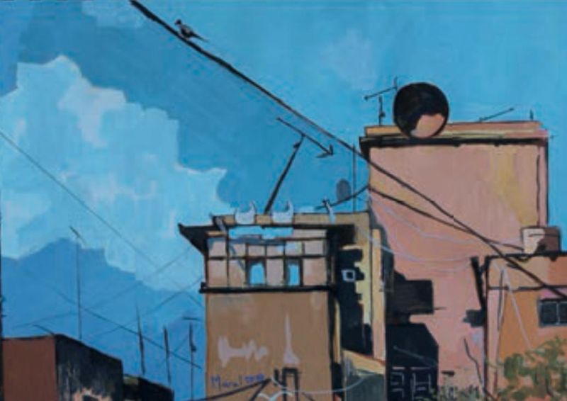 Pourtant, les vues plongeantes sur les toits de Beyrouth éveillent aussi chez Maral des souvenirs d’une douceur insoupçonnée, comme des fragments de bonheur nichés au cœur de la tourmente. Dans cette dualité entre l’ombre de la perte et la lumière du refuge, l’artiste a tissé un lien indéfectible avec ces paysages urbains qui racontent son histoire intime. Chaque façade, chaque fenêtre, chaque tuile devient sous son pinceau le réceptacle d’une émotion, d’une tranche de vie, d’un espoir farouchement préservé.