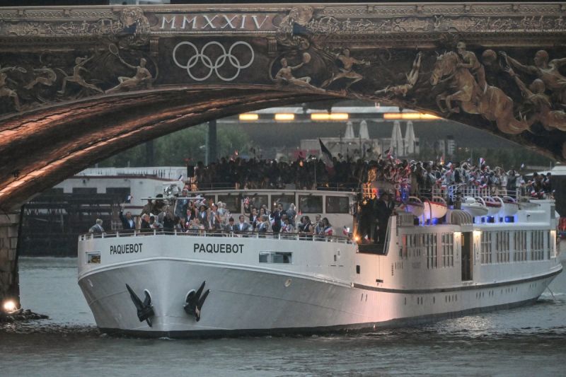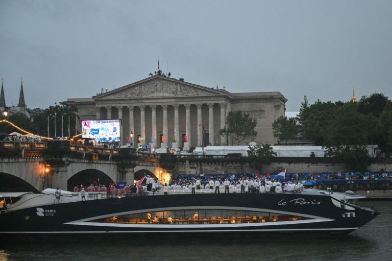 Les organisateurs ont dû composer avec un hôte qui n'était pas le bienvenu: la pluie intense. Sur les bateaux, les sportifs - 6.800 annoncés par les organisateurs - se protègent comme ils peuvent. Mais ils gardent leur enthousiasme, saluant la foule, par endroits clairsemée sur les quais hauts, là où devaient s'installer les 220.000 invités parmi les quelque 320.000 spectateurs attendus.