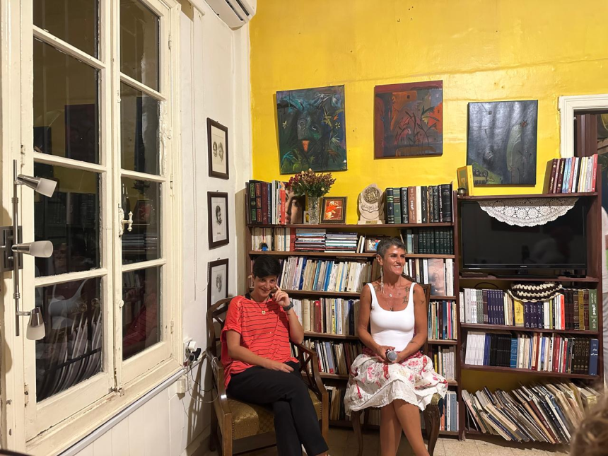 La séance de projection a eu lieu dans le salon de Beit el-Fan, la maison d’Adham Dimashki, accueillant à portes grandes ouvertes les amoureux du cinéma et de l’art.