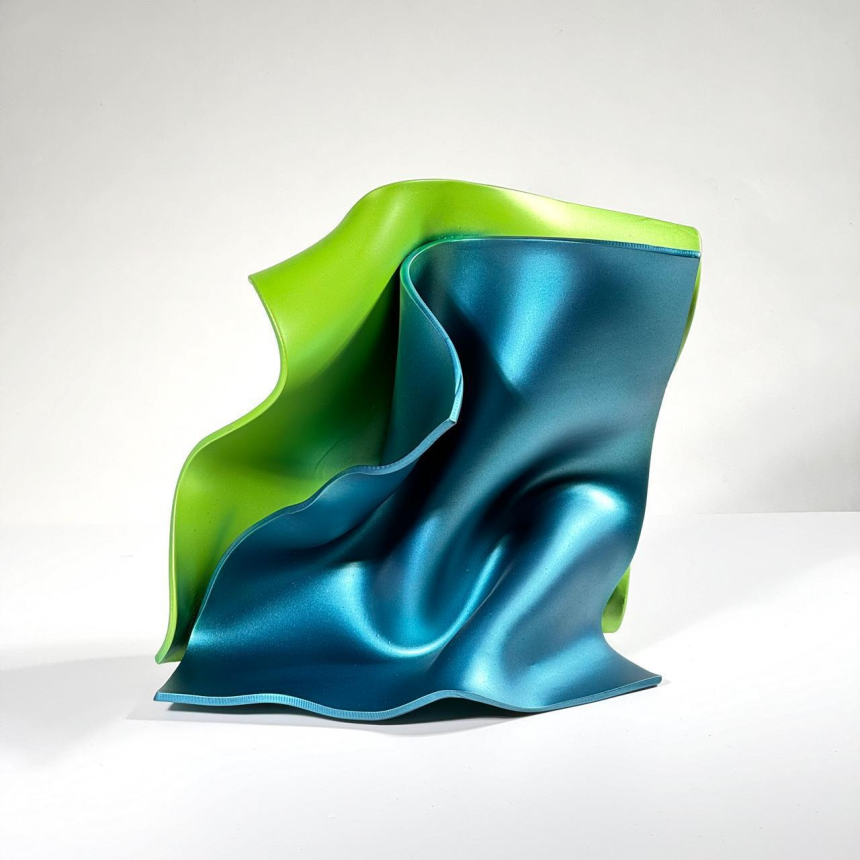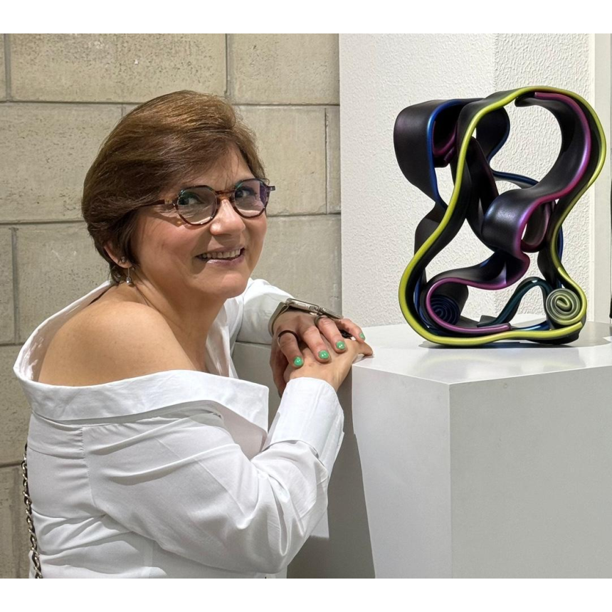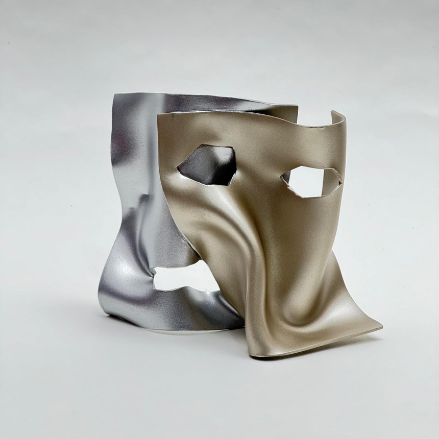 Les sculptures de Lina Husseini apportent une dimension supplémentaire à cette exploration de l’art libanais. Inspirées par l’essence même de Venise, ses œuvres jouent avec les formes et les matières pour évoquer tout à la fois la sinuosité des canaux, la majesté des monuments et la joie festive du carnaval. Présentées par paires, certaines de ces sculptures représentent des masques aux mille couleurs, célébrant la diversité et l’art du déguisement si cher à la tradition vénitienne. D’autres, aux lignes ondulantes ou froissées, semblent avoir été façonnées par le souffle même de la cité lacustre.