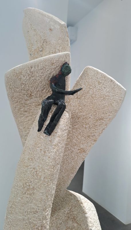 Ainsi en est-il de la sculpture réalisée avec une pierre de Bourgogne qui provient d’une ancienne carrière historique ayant servi les constructions du Trocadéro ou encore du Louvre. «C’est une pierre robuste, non capricieuse, elle est nette et compacte à travailler.»