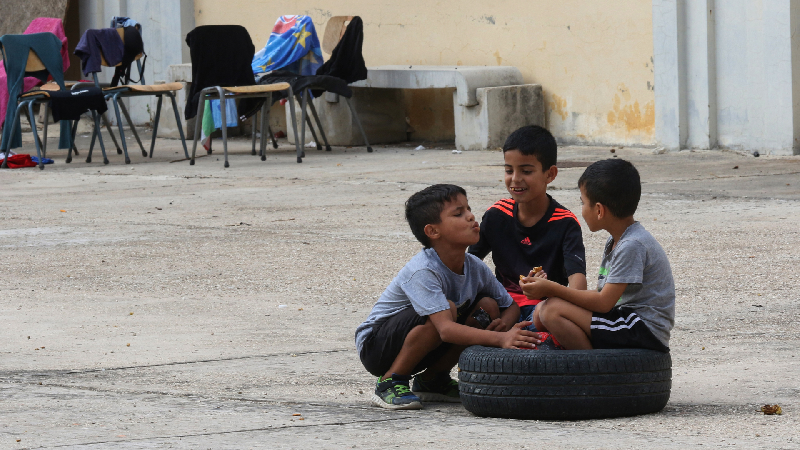 Des garçons jouent dans la cour d’une école à Tyr où des familles de déplacés libanais – ayant fui leurs villages près de la frontière sud – ont cherché refuge le 19 octobre 2023. Les déplacés en question étaient en quête de sécurité en raison des tensions croissantes entre Israël et le Hezbollah à la frontière. (AFPMalgré tout, Ahmad ne perd pas espoir: «Je prie pour la paix au Liban, pour que tout redevienne comme avant. Mon Liban me manque.»