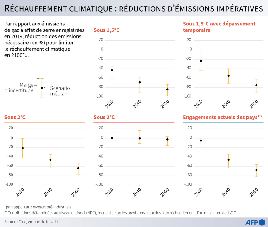 Le nouveau rapport des experts climat de l'ONU (Giec), publié lundi, se penche sur la réduction des émissions responsables du réchauffement climatique dont les effets catastrophiques se font déjà sentir à travers le monde.