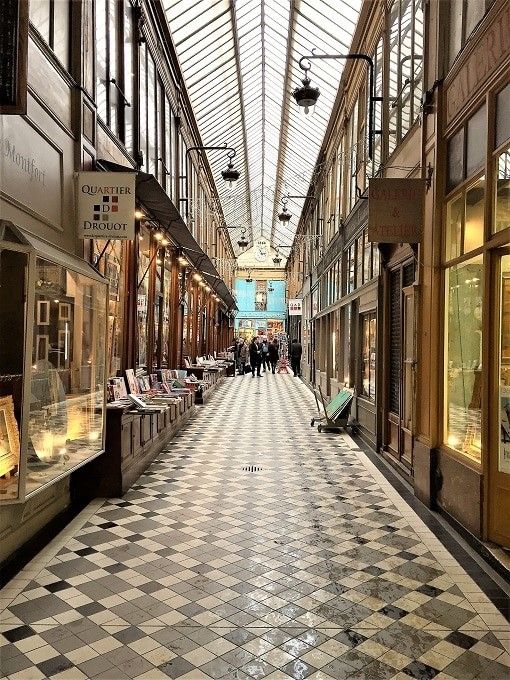 Édifiées pour la majorité dans la première moitié du XIXe siècle afin d'abriter une clientèle aisée, ces galeries percées au milieu des immeubles et surmontées de verrières abritent le plus souvent des salons de thé, des restaurants, des librairies, des boutiques d’antiquaires, des échoppes d’artisans et autres commerces variés. Les travaux d'Haussmann, qui marquent le deuxième versant de ce siècle, ouvrent les quartiers en perçant de grandes avenues, puis la concurrence des grands magasins conduiront à la disparition de la plupart des passages.