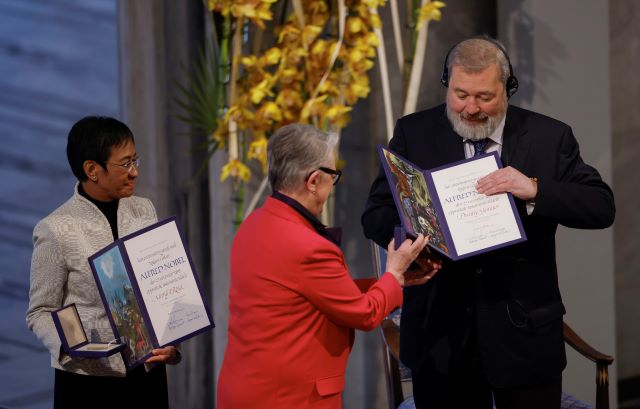 Le journaliste russe Dmitri Mouratov, prix Nobel de la Paix 2021 et rédacteur en chef du journal indépendant Novaïa Gazeta, a annoncé avoir été attaqué jeudi par un inconnu l'ayant aspergé d'un produit rouge dans un train.