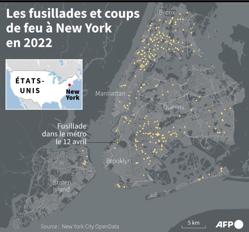 L'attaque de mardi a eu lieu alors que la ville de New York elle-même a été confrontée à une hausse de la criminalité depuis la pandémie de Covid-19, le nombre d'homicides passant de 319 en 2019 à 488 en 2021, même si le bilan annuel reste bien en-deçà des plus de 2.000 par an enregistrés au début des années 1990.