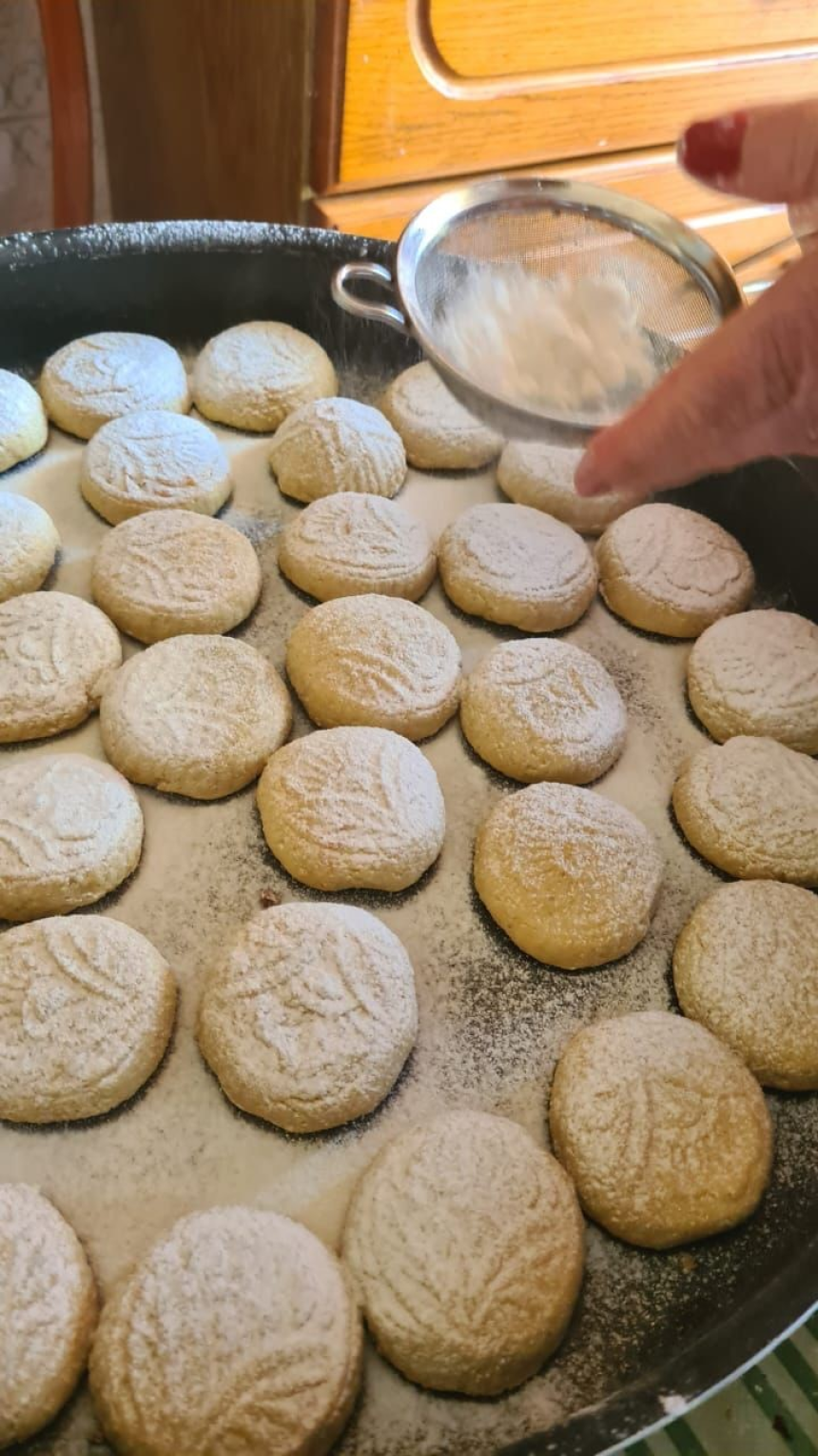 À l’approche de Pâques, les femmes se réunissent par groupes pour alléger la besogne. Et l’égayer. Parfois deux jours de travail par foyer: c’est long, fastidieux. Pâte et farce. Le plus long, rouler les boules à la bonne proportion. Les creuser, les fourrer à la main, l’une puis l’autre. Dans ce moule individuel en bois sculpté où la pâte se colle souvent. Ne pas les déchirer. Refermer, toujours sans trou. Puis taper énergiquement pour éjecter la pièce du moule avant la cuisson, sans l’écorcher. Les enfourner, les unes près des autres sur la plaque préalablement huilée. Et ce n’est pas tout. Chaque recette a son petit truc supplémentaire. Se retrouver à deux ou trois, pas plus: «On commence chez toi? Demain chez moi?Ça te va comme ça?»