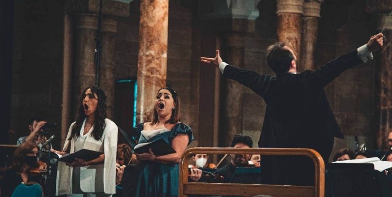 Christine Abou Zeid et Lara Jokhader chantant sous la direction de Garo Avessian.Nuances âpres et couleurs riches