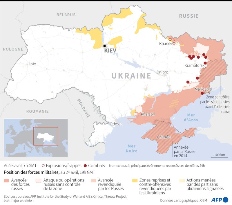 Selon le ministre de la Défense britannique Ben Wallace, Moscou a perdu à ce jour "approximativement 15.000 hommes" en Ukraine, un chiffre invérifiable de source indépendante. Moscou n'a donné aucun bilan depuis le 25 mars, lorsqu'elle avait affirmé avoir perdu 1.351 soldats.