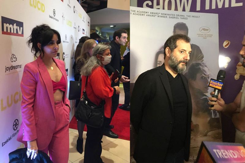À droite, l’actrice Sara Abi Kanaan (Maya) ; à gauche Adel Karam (Tarek) lors de la première du film, le 25 avril au Grand Cinémas ABC Ashrafieh (Crédits : Nada Ghosn)Lire aussi