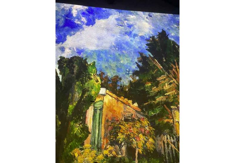 Ces paysages en plein air que Cézanne réalise sont inspirés de sa Provence natale. C’est à travers l’influence des impressionnistes, et surtout de Pissarro, qu’il traduit sa perception de la nature. Il participera à la première exposition impressionniste, en 1874, mais s’éloignera de ce courant tout en restant fidèle aux paysages en plein air. Les toiles qui défilent et remplissent les écrans géants de l’Atelier des Lumières nous font vivre ces moments comme dans un rêve.