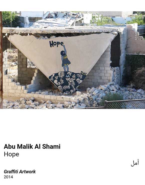 Une 3e section de cette exposition est dédiée à des photographies de graffitis et dessins sur les murs et bâtiments en ruine en Syrie. Des dessins sur les thèmes de la paix, de la tristesse, ou encore de la jeunesse; de quoi faire un véritable musée en plein air sur les ressentis et les émotions des Syriens face à la destruction de leur maison et de leur pays.