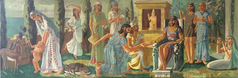 Huile sur canevas, Mustapha Farroukh (1937)Au début du 20e siècle, les cours d’enseignement artistiques sont intégrés dans les programmes scolaires des écoles beyrouthines, au Collège de la Sagesse et au Collège ottoman, puis dans les programmes universitaires de l’Université américaine de Beyrouth, en 1920. L’Académie libanaise des Beaux-Arts (ALBA) est fondée par les autorités mandataires en 1943. Il faudra attendre 1965 pour que l’art soit enseigné à l’Université libanaise.