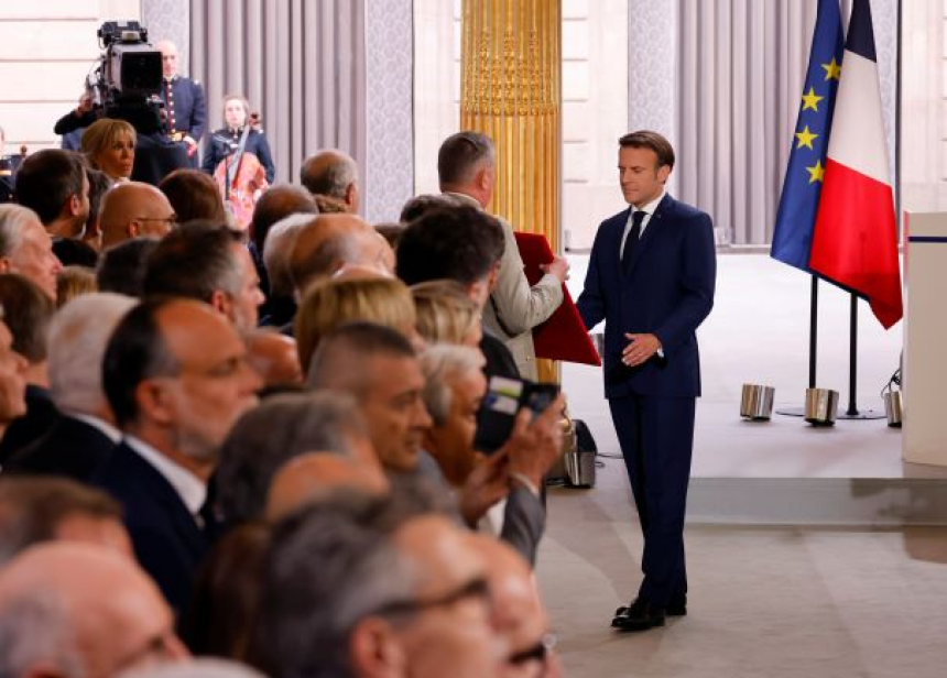 "Le temps qui s'ouvre sera celui d'une action résolue pour la France et pour l'Europe", a-t-il promis. "Agir d'abord pour éviter toute escalade suite à l'agression russe en Ukraine, aider la démocratie et le courage à l'emporter, bâtir une nouvelle paix européenne et une nouvelle autonomie sur notre continent".