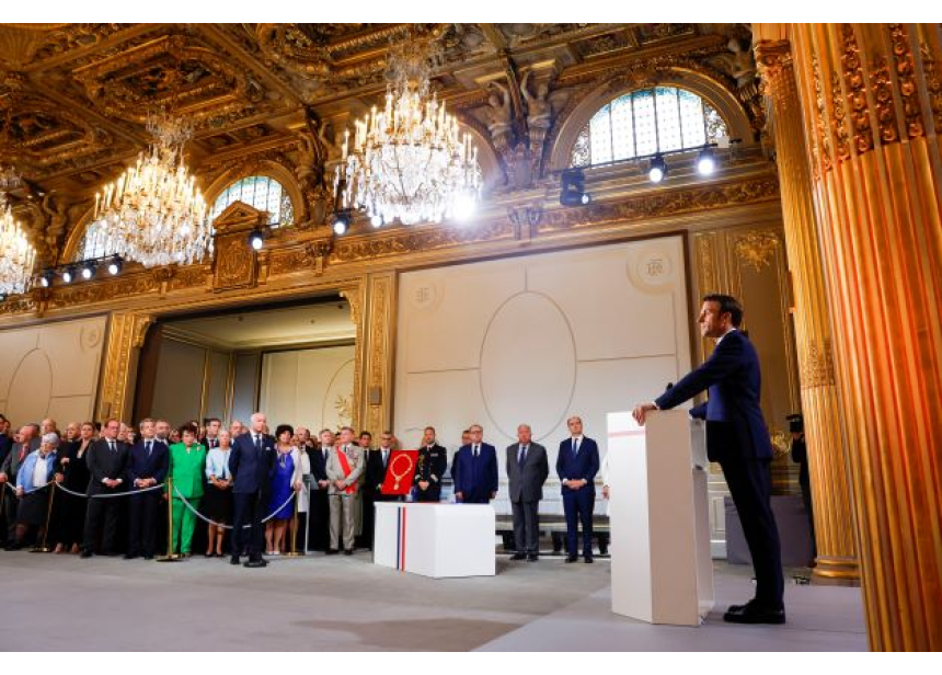 Après avoir officialisé son investiture, le président du Conseil constitutionnel, Laurent Fabius, l'a appelé à relever "les grands défis" de ce nouveau quinquennat qui fait suite à cinq années "percutées par une accumulation de crises et de bouleversements", comme ceux de la Covid, du climat ou de la guerre en Ukraine. "En ces temps troublés, soyons les serviteurs du droit et les esclaves du devoir", a-t-il ajouté, en citant Victor Hugo.
