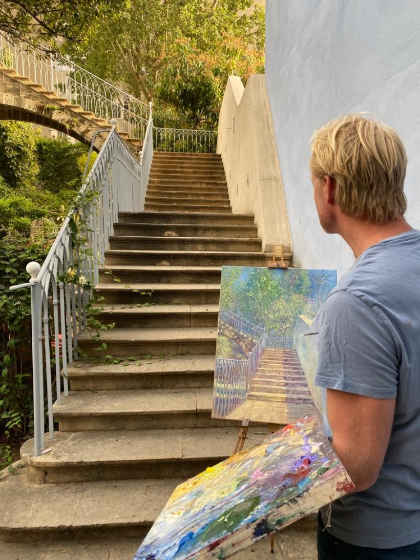 «Je suis venu au Liban pour la première fois en 2006, sollicité par une famille libanaise rencontrée à Londres qui m’a demandé de faire un tableau de leur maison de montagne. Dès que j’ai posé le pied au Liban, je suis immédiatement tombé sous le charme de ce pays. J’ai du mal à expliquer pourquoi, mais je me suis senti comme chez moi et j’ai su que j'allais revenir.»