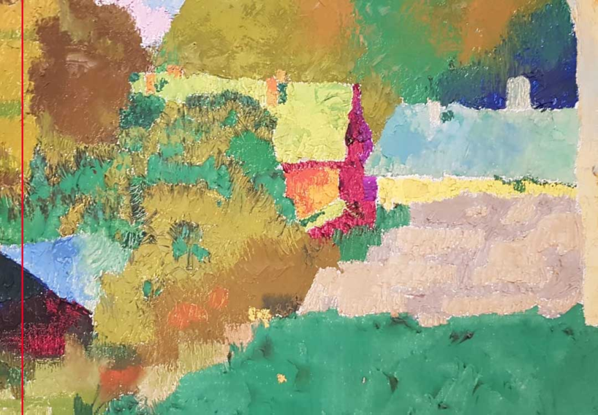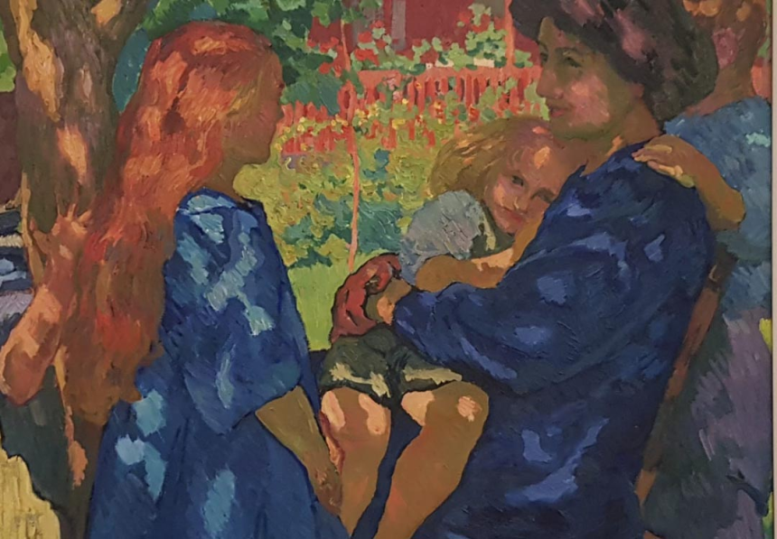 Après avoir été subjugués à l’extérieur par les animaux fantastiques issus de la mythologie de Miró, l’exposition dédiée à la famille Giacometti à l’intérieur du bâtiment nous révèle encore bien des surprises ! En effet, de salle en salle, défilent devant nous les peintures de Giovanni Giacometti (1868-1933), artiste suisse, au grand talent de coloriste, oscillant entre impressionnisme, postimpressionnisme et fauvisme et dont les œuvres aux aplats de couleurs, aux touches serrées et rythmées fascinent par leur puissance chromatique.