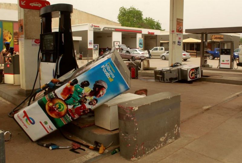 Des manifestants ont brûlé au moins deux drapeaux de l'ancienne puissance coloniale et vandalisé plusieurs stations-service Total, "symbole" de la France, arrachant des pompes et emportant certains produits exposés, a constaté un journaliste de l'AFP. Douze policiers ont également été blessés, selon un responsable policier qui a requis l'anonymat.