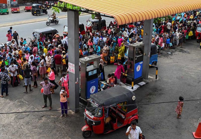 Fin 2021, les réserves en devises du Sri Lanka s'élevaient à seulement 2,7 milliards de dollars, contre 7,5 milliards à l'arrivée au pouvoir des frères Rajapaksa deux ans plus tôt. Les denrées alimentaires d'importation ont commencé à disparaître des rayons, obligeant les commerces à les rationner. Puis le pétrole, l'essence et le kérosène se sont à leur tour raréfié. De longues files d'attente sont désormais routinières dans tout le pays, pour s'approvisionner en produits de première nécessité (alimentation, médicaments, carburants). Les coupures d'électricité maintiennent une grande partie de la capitale Colombo dans l'obscurité chaque nuit.