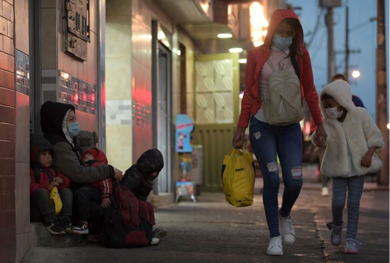 À la sortie d'un supermarché, une famille colombienne regarde le sac de courses d'une mère de famille. La crise alimentaire s'est aggravée en raison de la pandémie de Covid-19. (AFP)193 millions de personnes