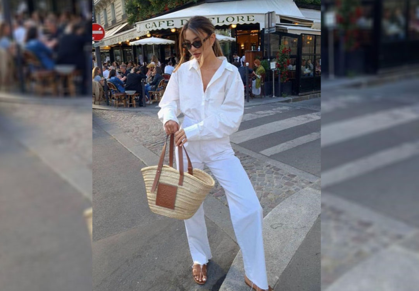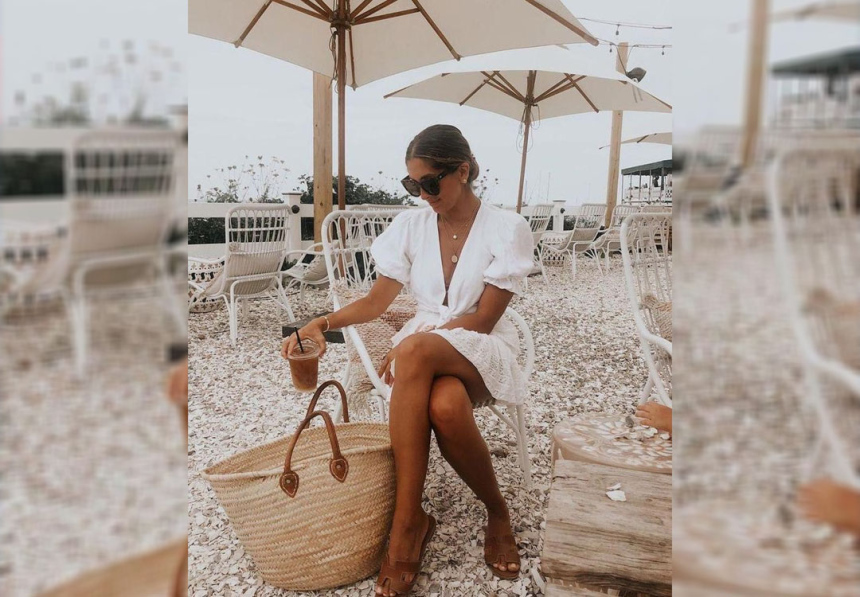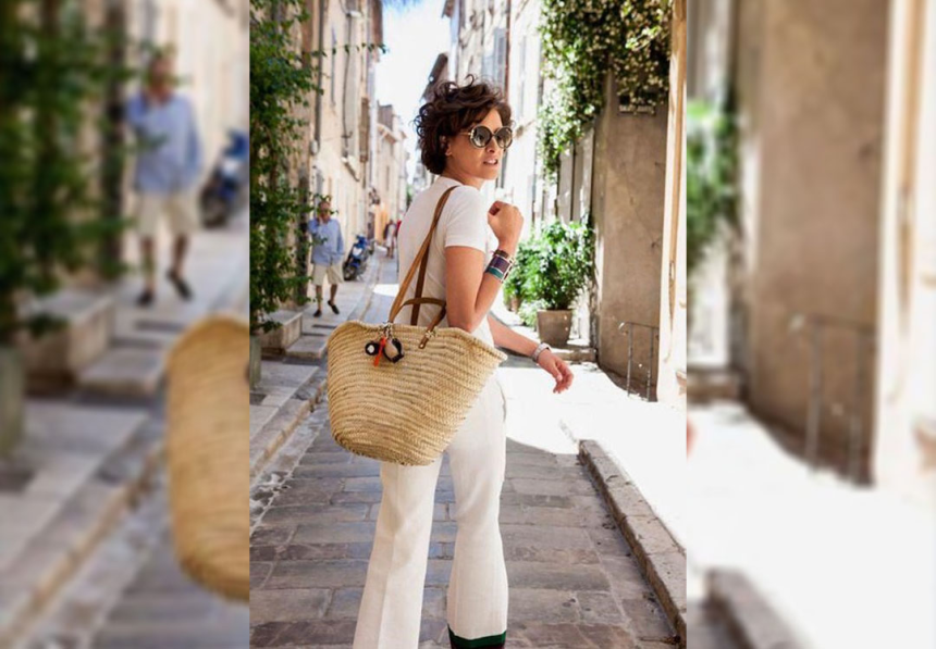 Pour un look chic, optez pour une robe blanche classique et ajoutez-lui un panier en osier pour justement casser le côté «trop sérieux» de la robe blanche. C’est parfait pour être à la pointe de l’élégance!