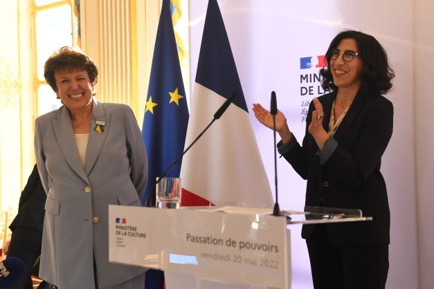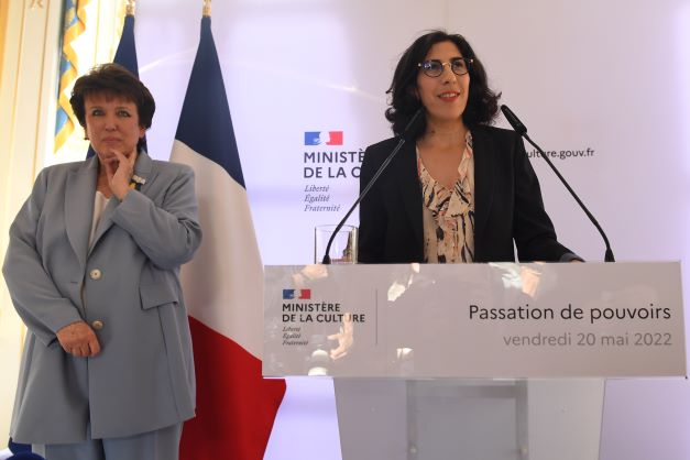 "Je suis résolue à défendre notre souveraineté culturelle pour affirmer la place de la création française, de la langue française, de l'innovation française dans l'océan numérique, et bientôt dans le métavers", a affirmé la Franco-Libanaise de 43 ans lors de la passation de pouvoirs avec Roselyne Bachelot rue de Valois, vendredi en fin d'après-midi.